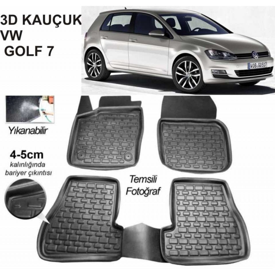 3D KAUÇUK PASPAS VW GOLF 7 UYUMLU SİYAH